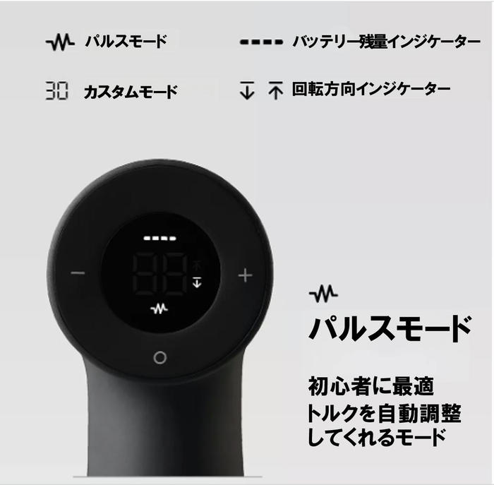 - “12V電動ドライバー”の背面に搭載しているHD LEDディスプレイはデザイン性が高く、一目で作動状況が分かるよう設計されています。