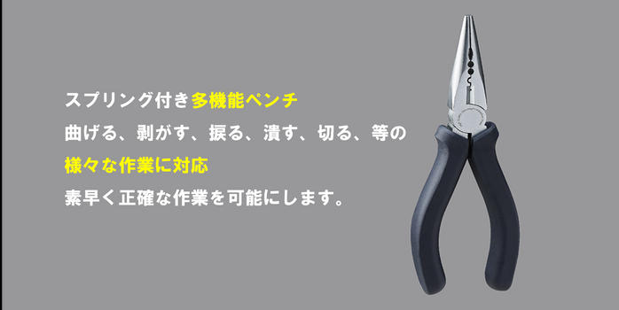 - HOTO ペンチは曲げる、剥がす、捩る、潰す、切る、等の様々な作業に対応したスプリング付き多機能ペンチです。