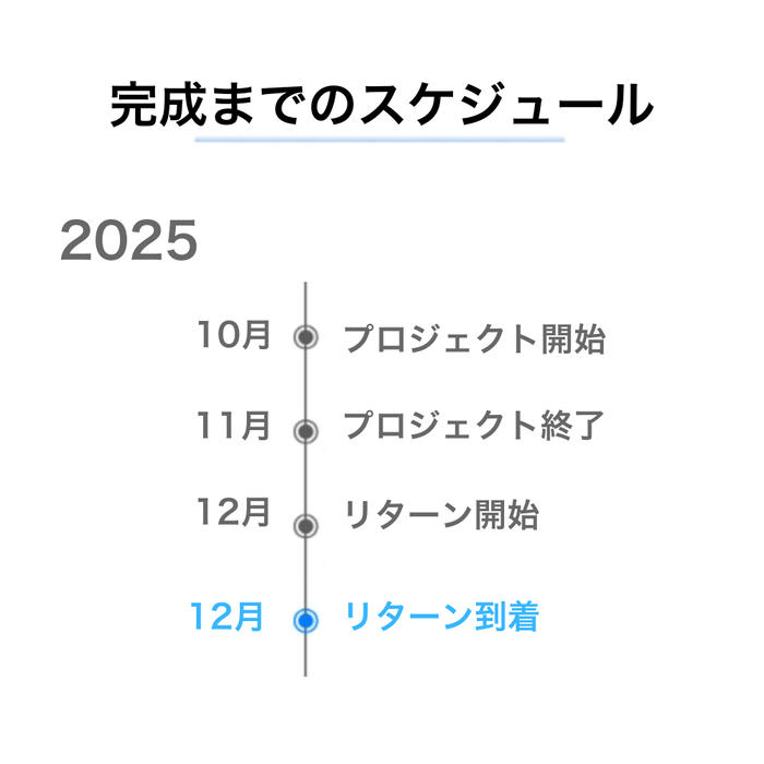 ※本文中に記載させていただいたスケジュールは、あくまでプロジェクト公開時点の予定です。支援の性質上、配送遅延のおそれがございます。