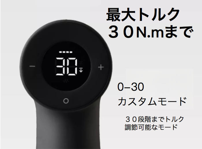 トルクは30段階で調整が可能なため、作業の幅が広がります。