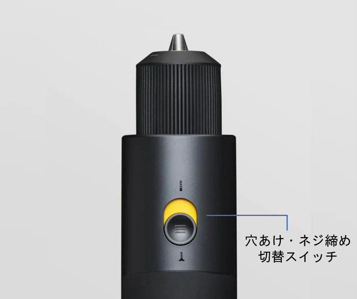 上部のスライドスイッチで穴あけとネジ締めの2つの機能を切り替えることが出来ます。 -