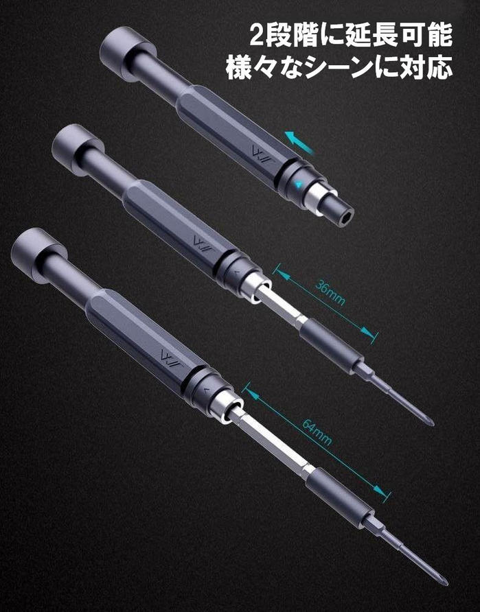 DIYに必要な80種類のツールがこれ1つに!家中のニーズ全てこれだけで解決! 精密ドライバー3本付属。例えば父と子供2人など、家族で一緒にDIYを楽しめる! ドライバーは2段階で延長可能!作業の幅がぐんと広がり効率アップ!
