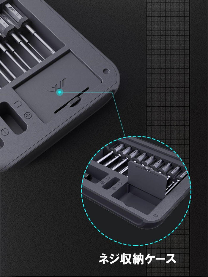 ”JIMISET 80”なら、本体ケースに外したネジ専用の蓋つき収納スペースがあるので、安心して作業に集中できます!