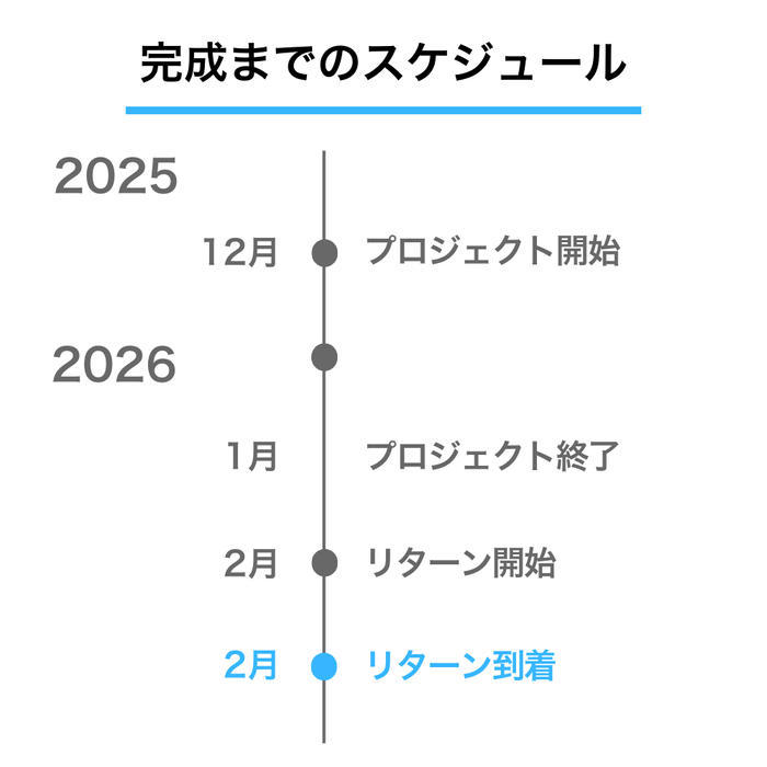 ※本文中に記載させていただいたスケジュールは、あくまでプロジェクト公開時点の予定です。支援の性質上、配送遅延のおそれがございます。