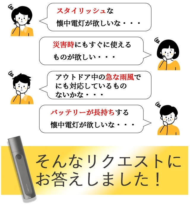 そのため、今回「利便性、デザイン性どちらも妥協しない!防塵防水ミニマルサイズ多機能LED懐中電灯」をぜひ手に取ってみてくださいね!