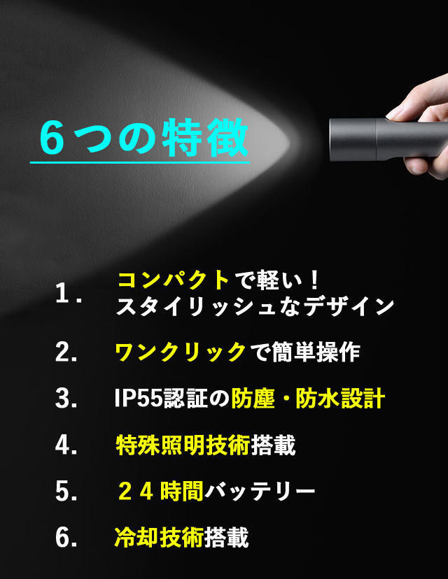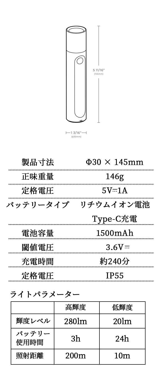 - そんな中見つけた最新のテクノロジーを駆使している上、「利便性、デザイン性どちらも妥協しない!防塵防水ミニマルサイズ多機能LED懐中電灯」を紹介させて頂きます。