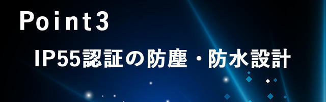 - ※IP55:電子機器などの防水や防塵に関する程度を示す等級。