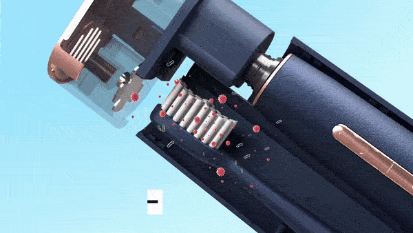 - ブラシを乾燥させると新鮮な状態が保たれますが、バクテリアなどの微生物がブラシ上で増殖する可能性があります。それを防ぐために、医療グレードのUV-C紫外線除菌がケース内に取り付けられ、ケースにしまうとブラシをUVクリーナーで清潔に保ちます。