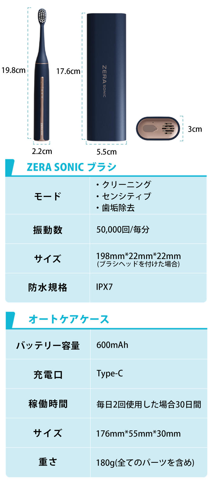 - ZERA SONICはオートケアケースにすべてが収納されているオールインワン。