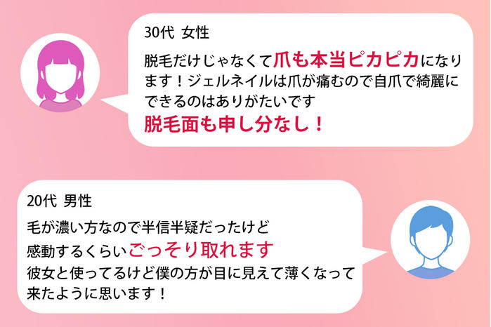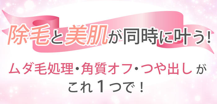 - さらに古い角質も一緒に除去してくれるので、脱毛と同時に美肌ケアまでできてしまいます!