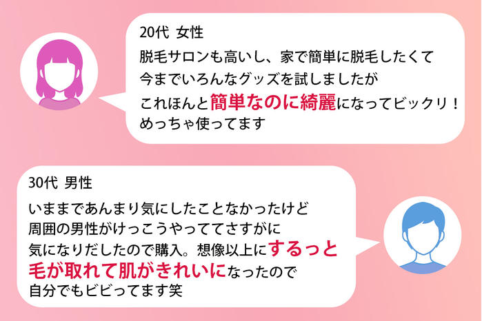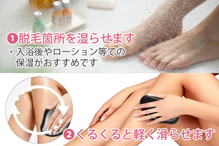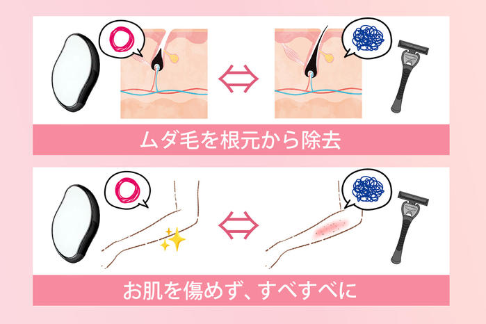 軽く肌をなでるだけでムダ毛を根元から除去します。 -