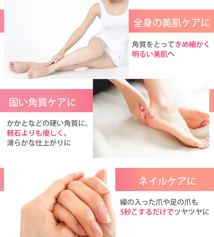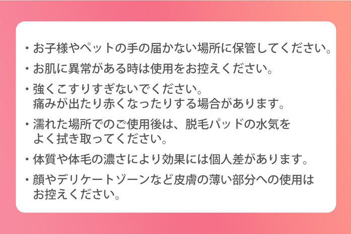 - Crystal 脱毛パッドで根元からの除毛&角質ケアをすることで毛穴をひきしめて肌を清潔に保ち、臭い防止に繋がります。