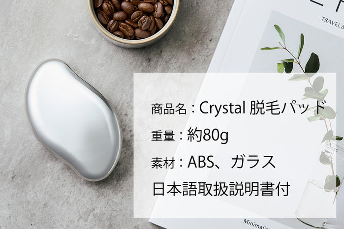 - 「Crystal 脱毛パッド」は、ムダ毛の処理と角質除去を同時に行える画期的なアイテムとして開発されました。