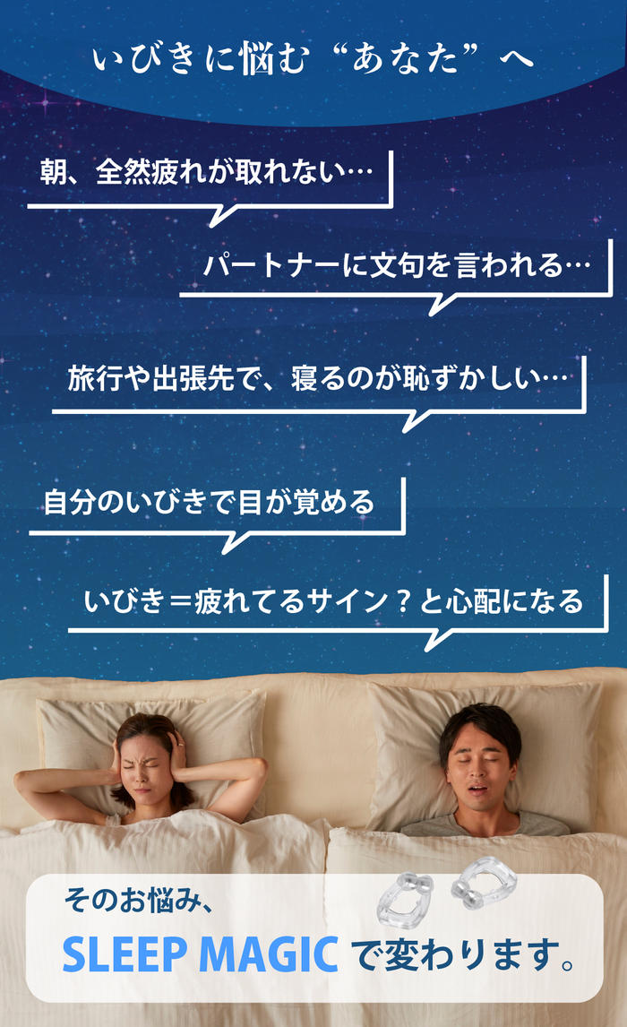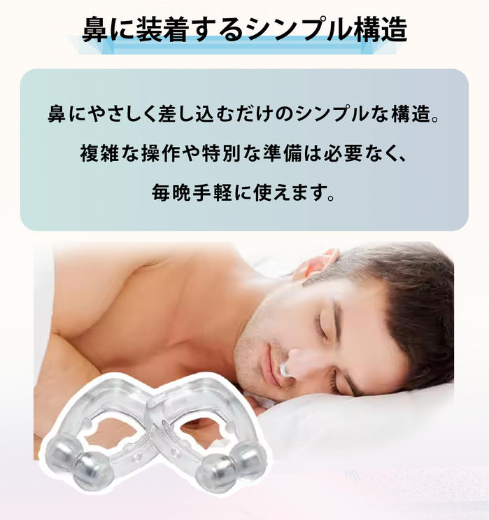 - SLEEP MAGICは、鼻に装着することで、いびきの軽減をサポートする小型のデバイスです。