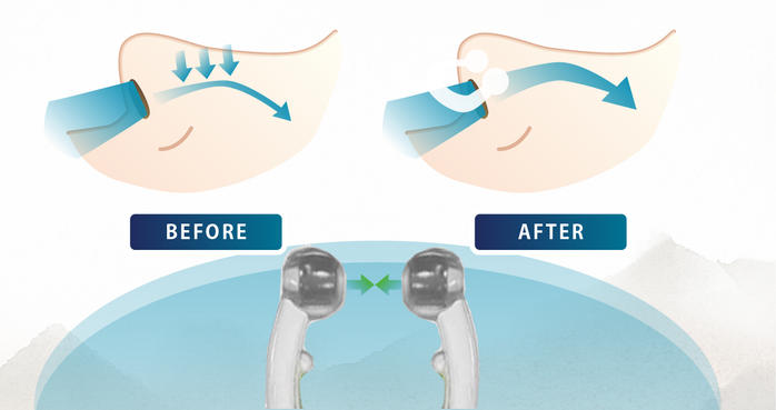 - 内部に搭載された磁石の力で鼻腔を広げ、空気の通りをスムーズに。