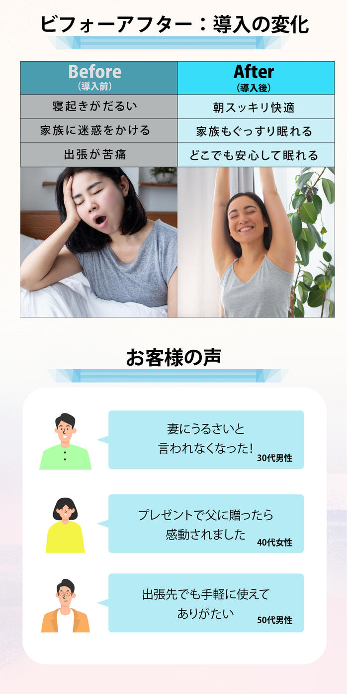 これにより、就寝中のいびきを和らげ、より快適な睡眠を目指せる構造になっています。 -