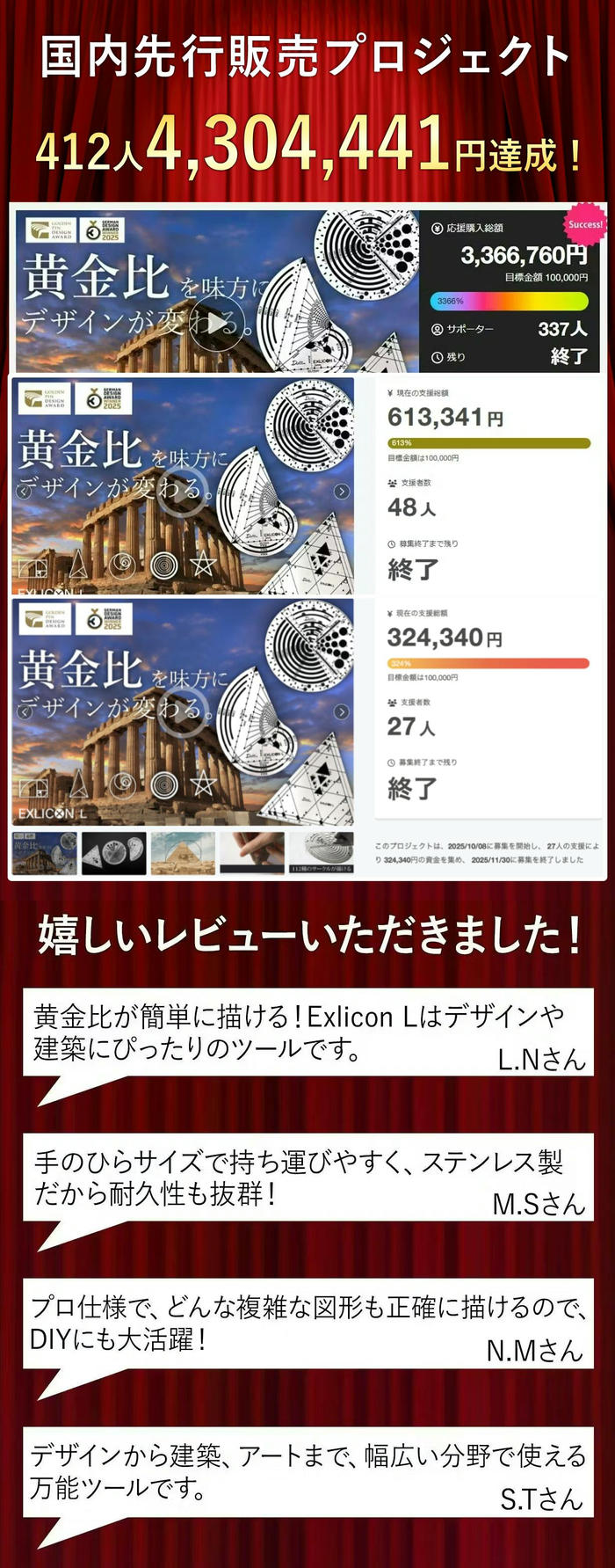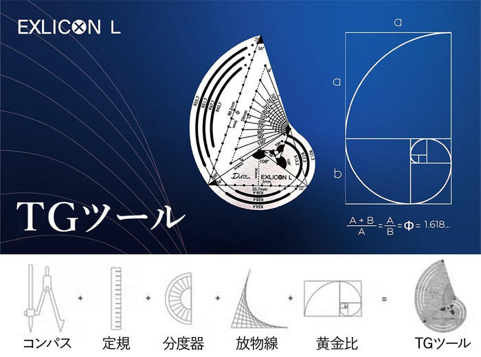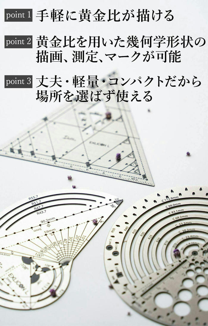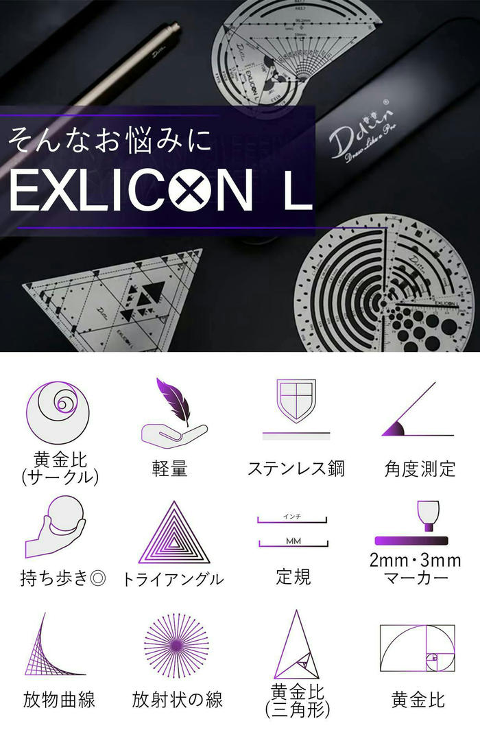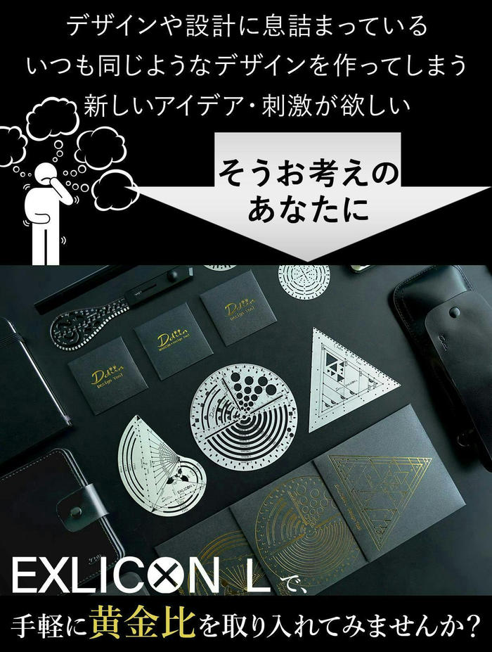 誰でも簡単に黄金比を描けて、それをデザインに活かすことができます。それだけでなく、さまざまな形状やアイデアの実現にも役立つこの Exlicon L は、デザインや設計に悩む人の力強い味方になってくれると信じ、自信をもって紹介します! -