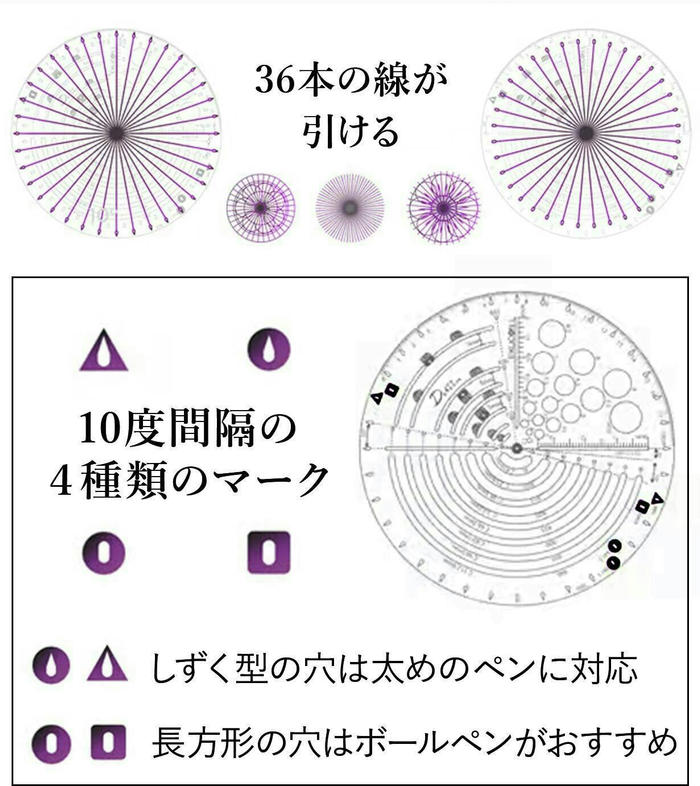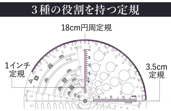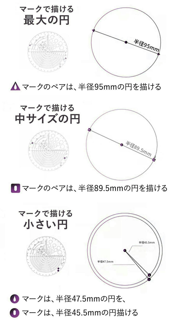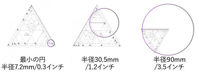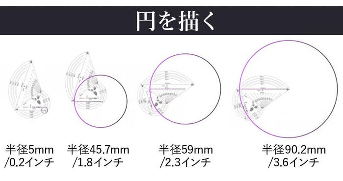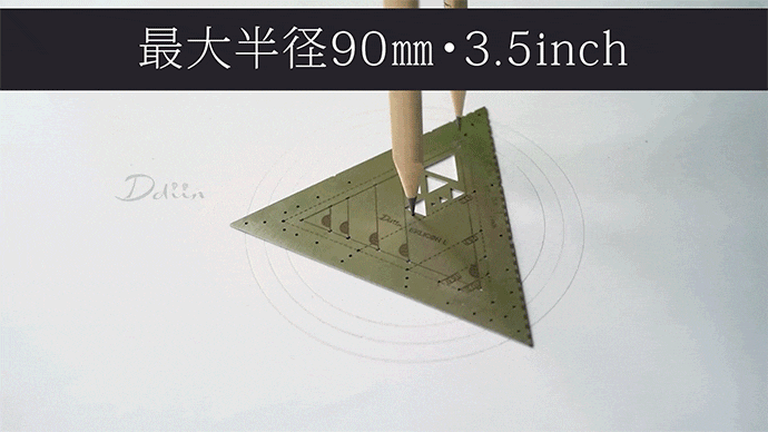 - 三角形の定規で最大半径90cmの円を描くことも可能です!