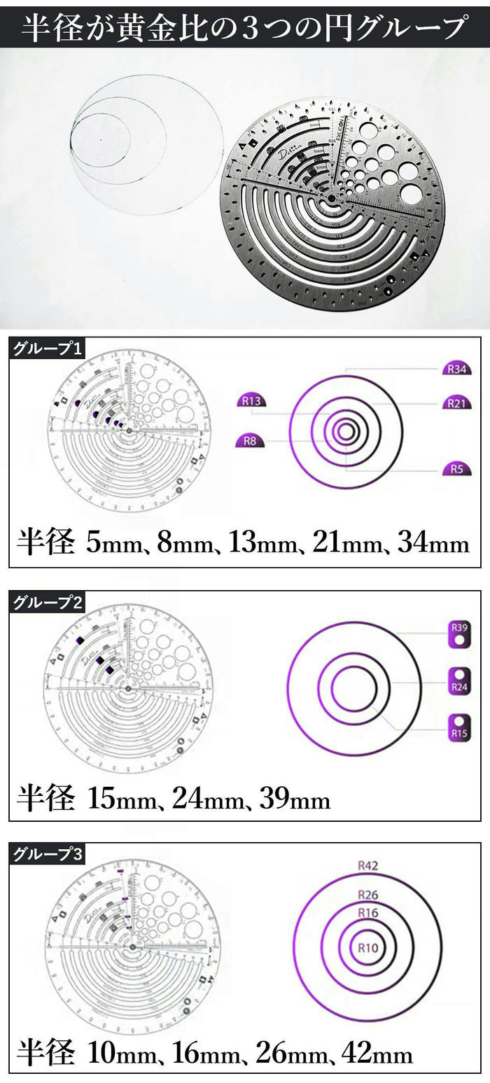 - 黄金比を作るための半径をグループごとにまとめています!